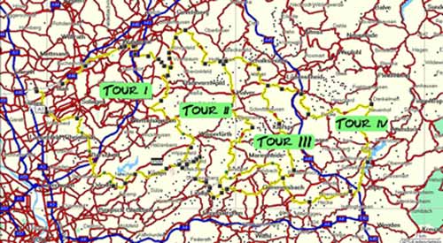EifelVor gerade mal 10.000 Jahren erschütterten Vulkane das Land.. Zurück blieb, als alles sich beruhigt hatte, eine einzigartig markante, vulkanische Landschaft mit Maaren und Basaltkegeln. Heute ist die Eifel eine von Rhein, Mosel, Sauer, Our, Rur und Ahr eingerahmte Mittel- gebirgslandschaft, die den schönsten Teil des Rheinischen Schiefergebirges darstellt. Landstraßen jeglicher Couleur durchziehen waldige und offene Höhen, dichte und tiefe Wälder, vorbei an Flüssen, Bächen, Seen und Talsperren. Ein schier endloses Netz an kleinen, verkehrsarmen Nebenstraßen mit Kehren, Serpentinen und lang gezogenen Kurven schlängelt sich durch die Landschaft und bietet sowohl für Anfänger wie auch fortgeschrittene Tourenfahrer eine Vielzahl von attraktiven Strecken.